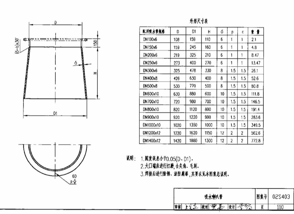 圖集號就是我們所能熟知的02S403這里邊,首先在映入我們眼簾的就是它的目錄在目錄上首先是目錄占了三頁,然后是總說明下面就是90度彎頭大樣圖從50~400的還有一個彎頭尺寸及重量表也是從50~400的,再往下呢是產(chǎn)品的一個大樣,圖這個大樣,圖小的沒有,就是到小的是450,頂大到兩米的,然后就是這個大樣圖的彎頭產(chǎn)品的尺寸重量再往下那就是一些其他的尺寸。小的產(chǎn)品在現(xiàn)實的生產(chǎn)中,全是按12459